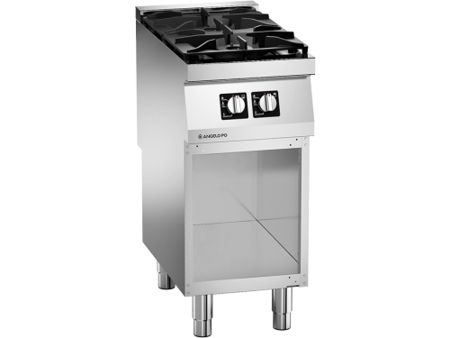 Onder het kookgedeelte bevindt zich een open opbergvak, ideaal voor het binnen handbereik houden van kookgerei of GN-bakken. Met een totaal gasvermogen van 13 kW en een compacte constructie van 40 x 72 x 90 cm biedt de Angelo Po 2-pits op onderkast een perfecte balans tussen kracht en ruimtebesparing, ideaal voor professionele keukens die flexibiliteit en prestaties eisen.