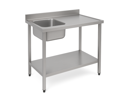 De tafels zijn ontworpen voor intensief gebruik en voorzien van een opstaande rand aan de achterkant en zijkanten, zodat water en etensresten niet van het werkblad lopen. Afhankelijk van de uitvoering is de linkerkant open, zodat de tafel eenvoudig tegen een vaatwasser of andere apparatuur geplaatst kan worden. Dankzij deze praktische details sluit de aanvoertafel naadloos aan op uw keukenworkflow en draagt hij bij aan een efficiënte en hygiënische werkomgeving.