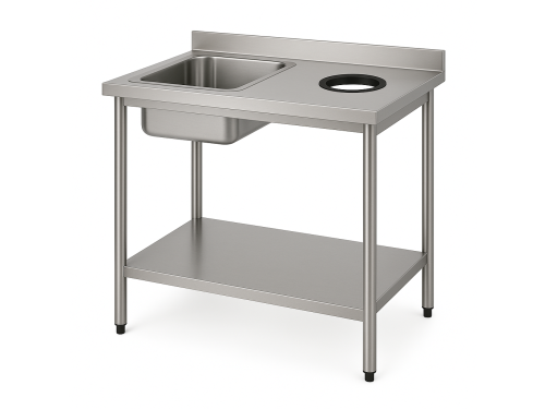 Dankzij de stevige constructie staat de tafel stabiel tijdens gebruik, terwijl het stortgat het mogelijk maakt om afvalwater of etensresten direct in een opvangbak of afvoer te laten verdwijnen. Dit verhoogt de efficiëntie en draagt bij aan een nette en overzichtelijke spoelkeuken.