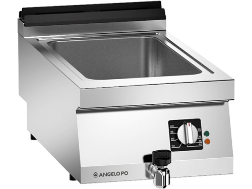 De elektrische bain-marie is volledig vervaardigd uit hoogwaardig AISI 304 roestvrijstaal en voorzien van een robuust 2 mm dik werkblad. De geperste, waterdichte kuip met satijnafwerking is geschikt voor GN 1/1- en deelmaten. Dankzij indirecte verwarming, instelbaar via een bedrijfsthermostaat (30–90°C) en beveiligd met een veiligheidsthermostaat, worden gerechten gelijkmatig en veilig warm gehouden. Ideaal voor het serveren van warme maaltijden in gastronormbakken (niet inbegrepen). Voorzien van aansluiting voor extern piekstroombeheer.