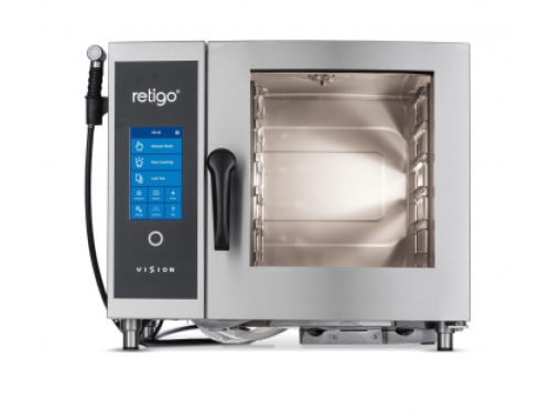 Retigo Vision 623 combi-ovens zijn ideaal voor bedrijven die tot 50 porties per dag serveren. De gastronormcontainermaat is GN 2/3 (354x325 mm). Deze combi-ovens kunnen worden geïnstalleerd op een standaard rek, op een wandconsole of direct op een tafel. Het stoomgeneratiesysteem werkt alleen door injectie. De warmtebron is elektriciteit.