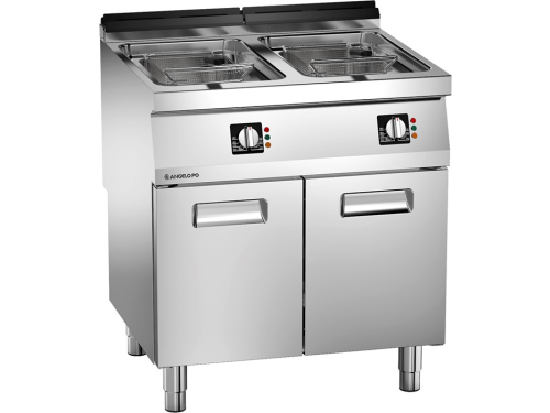 Met een totaal vermogen van 21 kW en een capaciteit van 18,2 kg friet per uur per kuip is deze friteuse perfect geschikt voor drukke horecagelegenheden, grootkeukens en cateringbedrijven. Het compacte formaat van 80x72x90 cm, gecombineerd met de geïntegreerde onderkast, maakt het eenvoudig om de friteuse in elke keukenopstelling te integreren zonder in te leveren op werkruimte of prestaties.