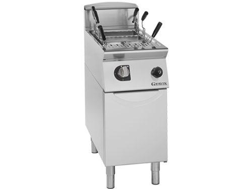 De Giorik CPE726 is een enkelvoudige elektrische pastakoker met een tankinhoud van 26 liter, ontworpen voor professionele keukens die waarde hechten aan betrouwbaarheid, gebruiksgemak en een hoogwaardig kookresultaat. De machine is volledig uitgevoerd in roestvast staal, waarbij het werkblad vervaardigd is uit AISI 304 met een dikte van 1,5 mm voor extra duurzaamheid en eenvoudige reiniging. De werkhoogte is verstelbaar van 855 tot 900 mm, en de verstelbare roestvaststalen poten zorgen voor een perfecte plaatsing in elke keukenopstelling.