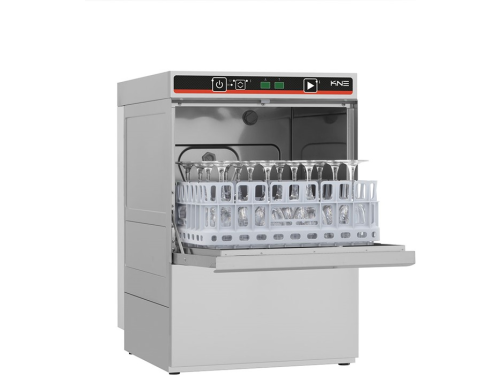 De KNE40PD Glass Washer is een compacte maar krachtige vaatwasser, speciaal ontwikkeld voor bars, restaurants en horecazaken waar snelheid en betrouwbaarheid centraal staan. Met een capaciteit van 30 baskets per uur en een basketformaat van 40x40 cm is dit toestel perfect voor glazen, kopjes, borden en bestek.