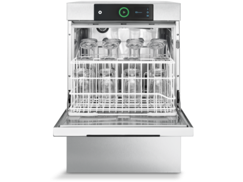 De PROFI GC is het compacte instapmodel dat ondanks zijn kleine formaat indrukwekkende prestaties levert. Met een capaciteit tot 48 rekken per uur – goed voor bijna 1.000 glazen – is deze machine ideaal voor bedrijven waar tijdens piekmomenten continu glaswerk moet worden gespoeld. Dankzij het lage waterverbruik van slechts 1,7 liter per wasbeurt is de GC bovendien de zuinigste glazenwasmachine op de markt.