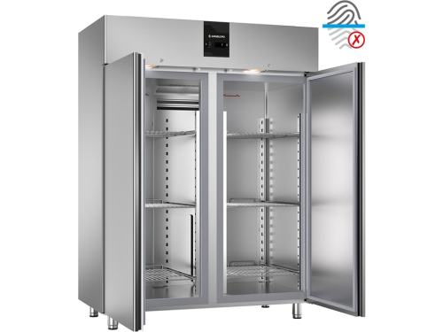De EF15T koelkast is ontworpen met een interne en externe behuizing uit één stuk in speciaal anti-fingerprint staal, wat zorgt voor duurzaamheid en een altijd nette uitstraling. De ruime opslagkamer is uitgerust met roestvrijstalen draagsteunen in AISI 304 met in totaal 21 niveaus. Dankzij het geventileerde koelsysteem met de verdamper buiten de koelruimte blijft de temperatuur optimaal constant. Ontdooien gebeurt elektrisch en volledig automatisch. Het bedieningspaneel is voorzien van een moderne touch thermometer-thermostaat, zodat de temperatuur eenvoudig en precies ingesteld kan worden. Standaard wordt dit model geleverd met zes geplastificeerde GN 2/1 roosters en zes paar roestvrijstalen geleiders.