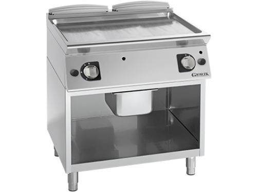 De Giorik FLG741GCRX is een robuuste, gasgestookte fry top op open onderkast, uitgevoerd met een volledig gladde, chroomgeplateerde bakplaat met satijnen afwerking. Dit model is ideaal voor horecakeukens die een groot bakoppervlak nodig hebben voor intensief en veelzijdig gebruik.