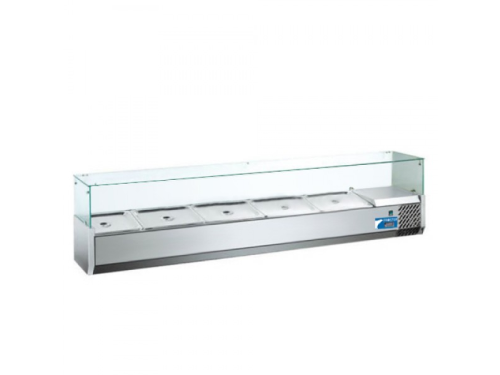 De gekoelde opzet saladiere 140 cm biedt ruimte voor 6 gastronormbakken van 1/3GN en is daarmee de ideale oplossing voor het koel bewaren en presenteren van salades, toppings of andere verse ingrediënten. Dankzij de compacte en hygiënische uitvoering blijft alles op de juiste temperatuur én binnen handbereik tijdens het bereiden of serveren van gerechten.