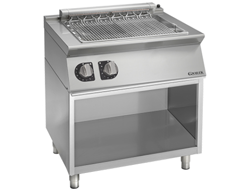 De Giorik GL74GE is een krachtige elektrische grill uit de Unika 700-serie, ontwikkeld voor intensief gebruik in professionele horecakeukens. Het robuuste ontwerp met een volledig roestvaststalen buitenzijde en een werkblad van AISI 304 met een dikte van 1,2 mm garandeert duurzaamheid en eenvoudige reiniging. Dankzij het in hoogte verstelbare werkblad, variërend van 855 tot 900 mm, en de verstelbare RVS poten kan de grill optimaal worden afgesteld op de werkhoogte van de gebruiker.