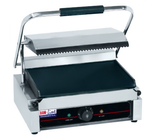 Met onze BonLine contactgrill maakt u heerlijkste panini’s. Deze grill van is van het merk BonLine, wat in de horecawereld bekendstaat als een uitstekend merk dat apparatuur van kwaliteit biedt. Doordat de bodemplaat glad is maakt dit de contactgrill zeer multifunctioneel omdat u er dan ook bijvoorbeeld een eitje op kunt bakken.