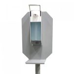 Met onze desinfectiezuilen biedt u iedereen de gelegenheid om zijn of haar handen te desinfecteren zonder water. De desinfectie dispenser, is hygiënisch te bedienen dankzij de pompbeugel met elleboogbediening.