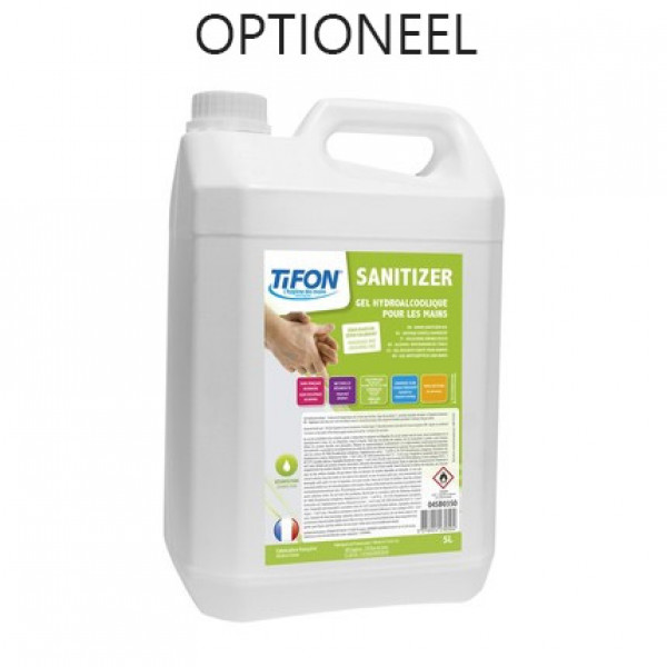 Het reservoir van de dispenser kunt u vullen met 500 ml alcoholgel. Bijvoorbeeld met onze desinfectie gel in 5 liter can (apart verkrijgbaar).