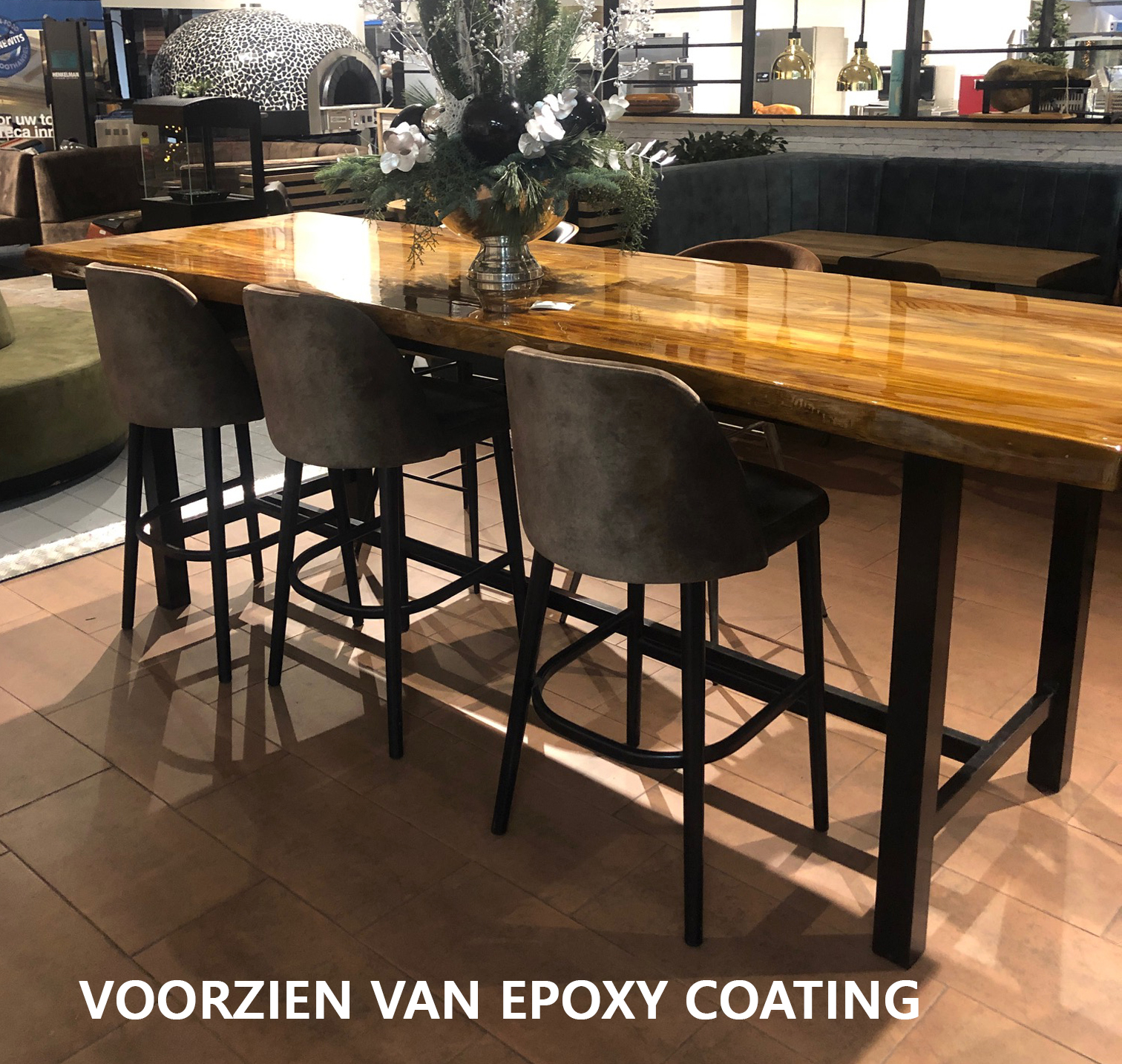 Het is bij Bonnewits Horeca ook mogelijk om tegen een meerprijs de sesamhouten tafelbladen te voorzien van een Epoxy coating! Informeer naar de mogelijkheden en prijzen.