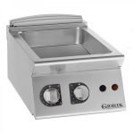 Kwalitatief hoogstaande elektrische bain-marie uit de Unika700 Top serie van het Italiaanse merk Giorik. De bain-marie is instelbaar van 30°C tot 90°C.