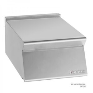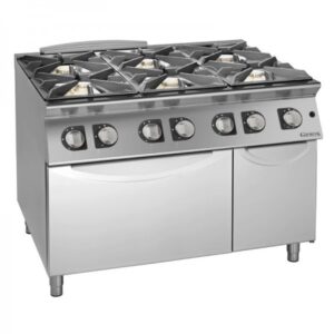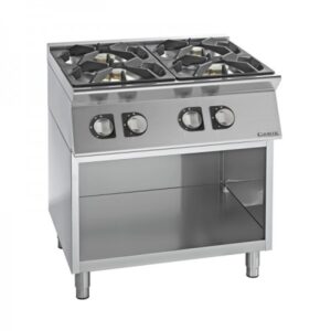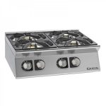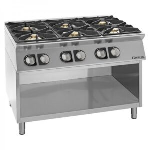 Deze krachtige opzetmodel kooktafel is volledig vervaardigd uit het RVS en is voorzien van in hoogte verstelbare poten voor het afstellen. De kooktafel met een vermogen van maar liefst 24 kW is uitgerust met geëmailleerde gietijzeren roosters die geschikt zijn voor pannen met een kleine diameter.