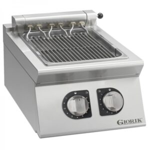 Kwalitatief hoogstaande opzet watergrill uit de Unika700 Top serie van het Italiaanse merk Giorik. Door het hoge vermogen van de watergrill en de waterdampen, brandt uw vlees zeer snel dicht, wat ervoor zorgt dat er geen vleessappen verloren gaan.