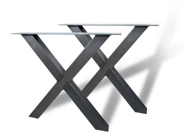 Industriële, stoere en robuuste tafelonderstel met X poten. Deze handgemaakte tafel onderstellen zijn op en top afgewerkt, en dat is ook terug te zien aan onder andere de stoere zichtbare industriële lasnaden en de extra brede bevestigingsplaat.