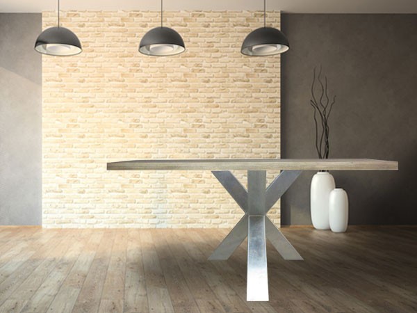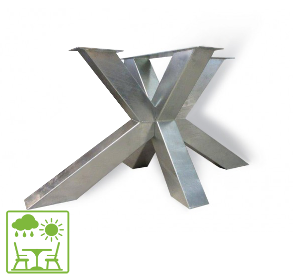 Het onderstel is speciaal ontwikkeld om buiten gebruikt te worden. Dankzij de hoogwaardige thermisch verzinkte zinklaag kunt u deze poten jarenlang buiten gebruiken. Het unieke patroon van het zink geeft de poot een bijzonder industrieel karakter.