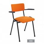 Robuuste, functionele en vrijwel onverwoestbare gestoffeerde kantinestoel met armleuningen. Efficiënt in gebruik doordat deze stoelen gestapeld kunnen worden en weinig ruimte innemen als ze opgeborgen moeten worden.