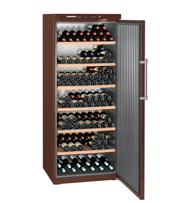 De Liebherr wijnbewaarkast WKt 6451 uit de GrandCru serie is rondom uitgevoerd in terrakleur met aluminium hevelgreep. GrandCru model met verstelbare houten legplateaus, digitale temperatuurmeter, verlichting, ventilatiekoeling en alarmering. Capaciteit 312 flessen (Bordeauxformaat).