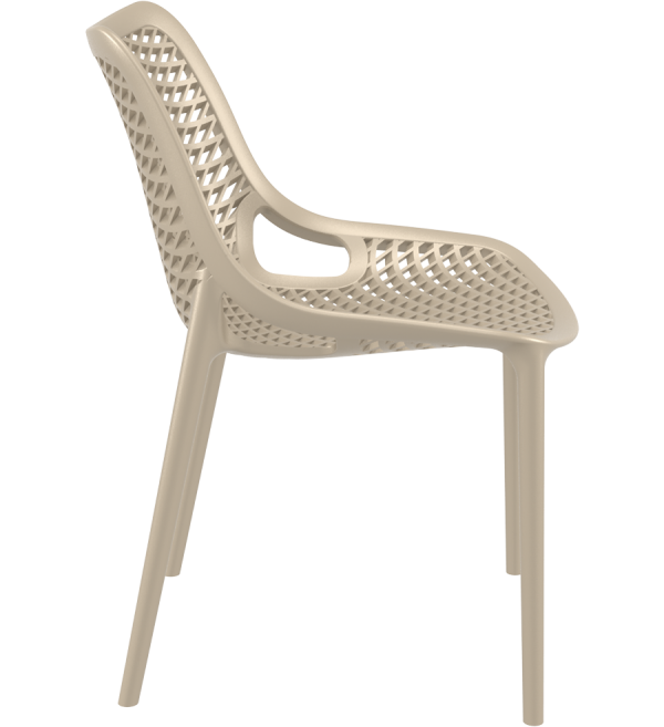 De terrasstoel Air is een luxe terrasstoel in de kleur taupe uit de Air Collectie voor op uw terras. De stoel Air is geproduceerd uit polypropyleen en is in zijn geheel versterkt met glasvezel. Geschikt voor binnen en buiten gebruik. De terrasstoel Air is verkrijgbaar in de kleuren donkergrijs, taupe en rood.