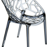 De terrasstoel Crystal is leverbaar in de kleuren zwart, smoke grey en amber.