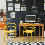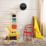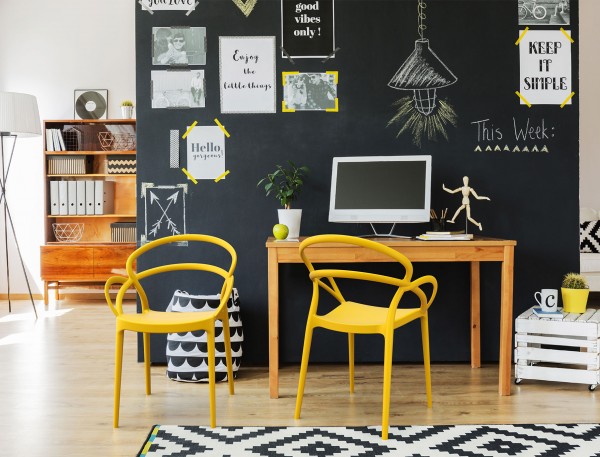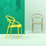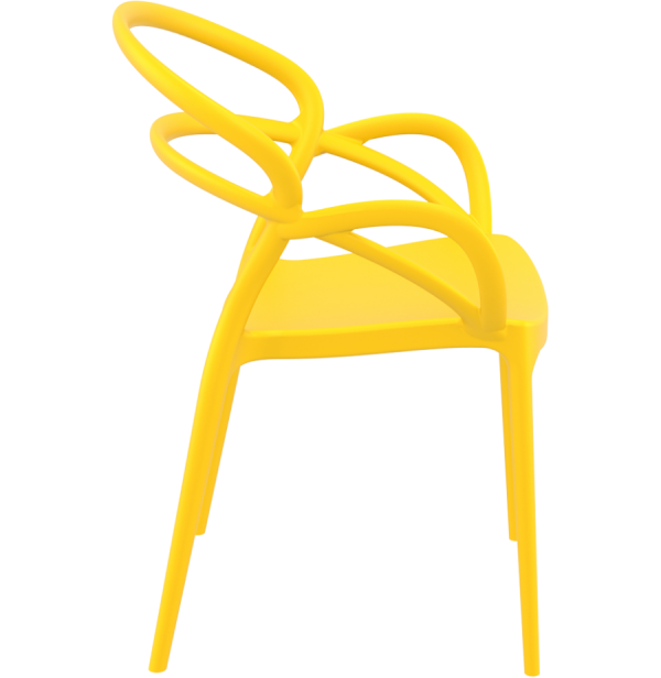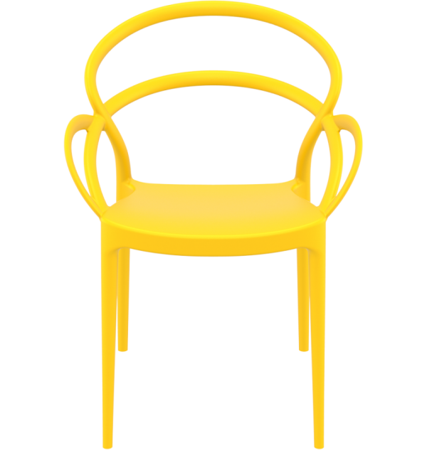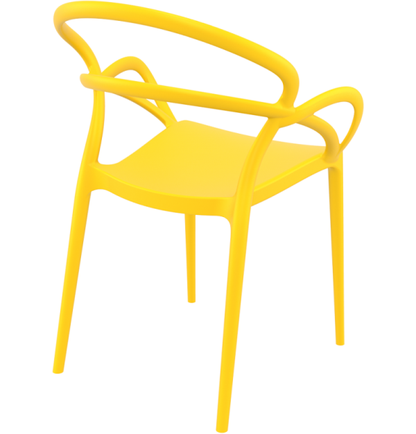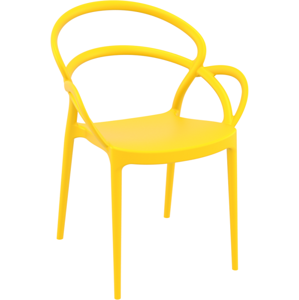 Prachtige stapelbare stoel van geel polypropyleen.