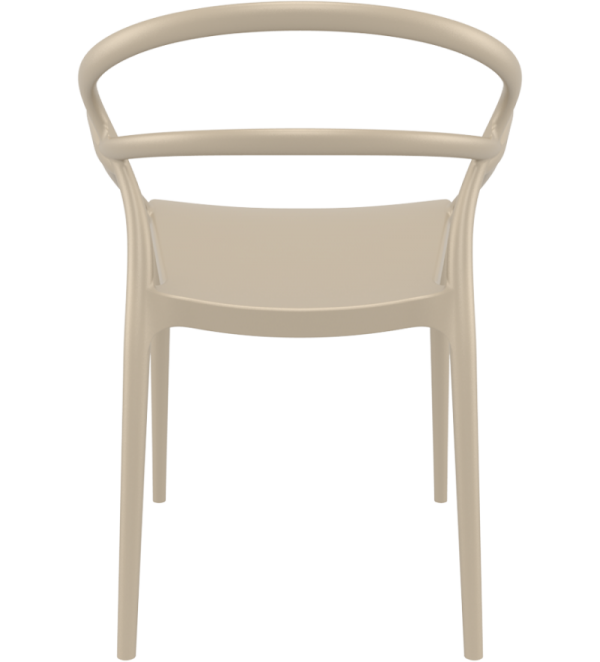 Prachtige stapelbare stoel van taupe polypropyleen.