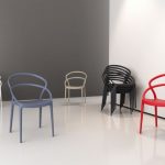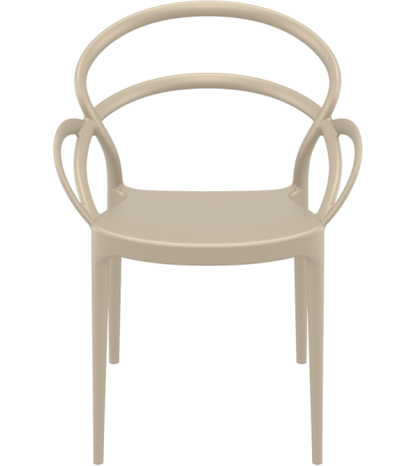 De design stoel Mila met armleuningen wordt geproduceerd met een enkele injectie van polypropyleen versterkt met glasvezel, verkregen door middel van de nieuwste generatie luchtvormtechnologie. Geschikt voor binnen en buiten gebruik.