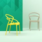 De terrasstoel Mila is ook verkrijgbaar in de kleur geel.