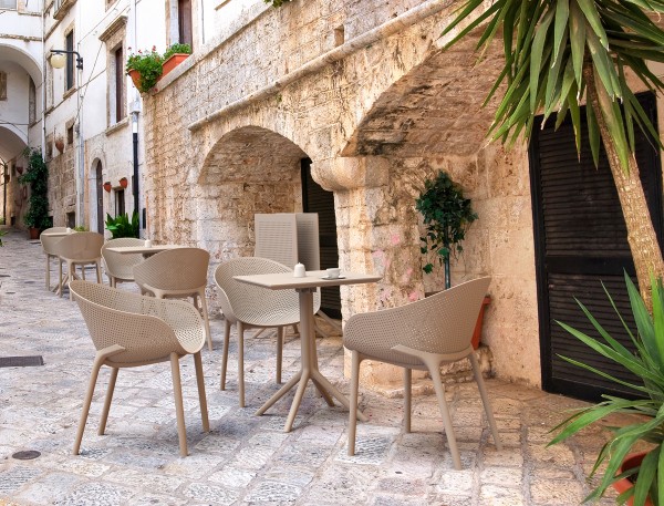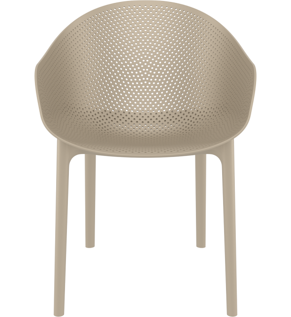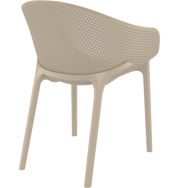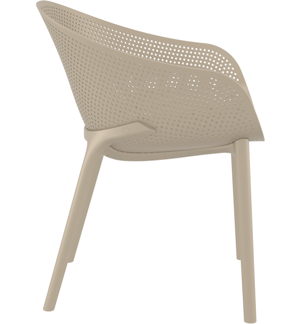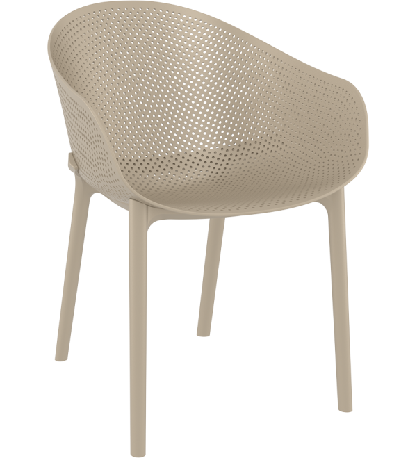 Prachtige taupe kuipstoel. De terrasstoel Sky is geproduceerd uit recyclebaar polypropyleen en is in zijn geheel versterkt met glasvezel. Voor binnen en buiten gebruik. Kan tevens gedemonteerd worden. De terrasstoel Sky is ook verkrijgbaar in de kleur zwart.