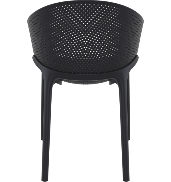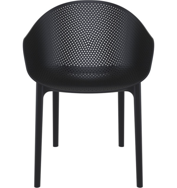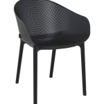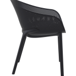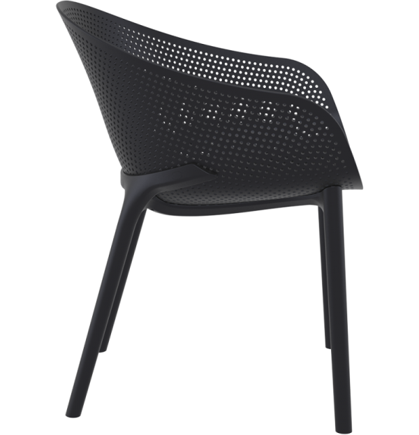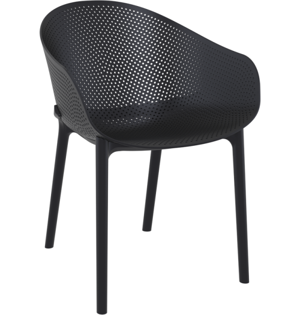 Prachtige zwarte kuipstoel. De terrasstoel Sky is geproduceerd uit recyclebaar polypropyleen en is in zijn geheel versterkt met glasvezel. Voor binnen en buiten gebruik. Kan tevens gedemonteerd worden. De terrasstoel Sky is ook verkrijgbaar in de kleur taupe.